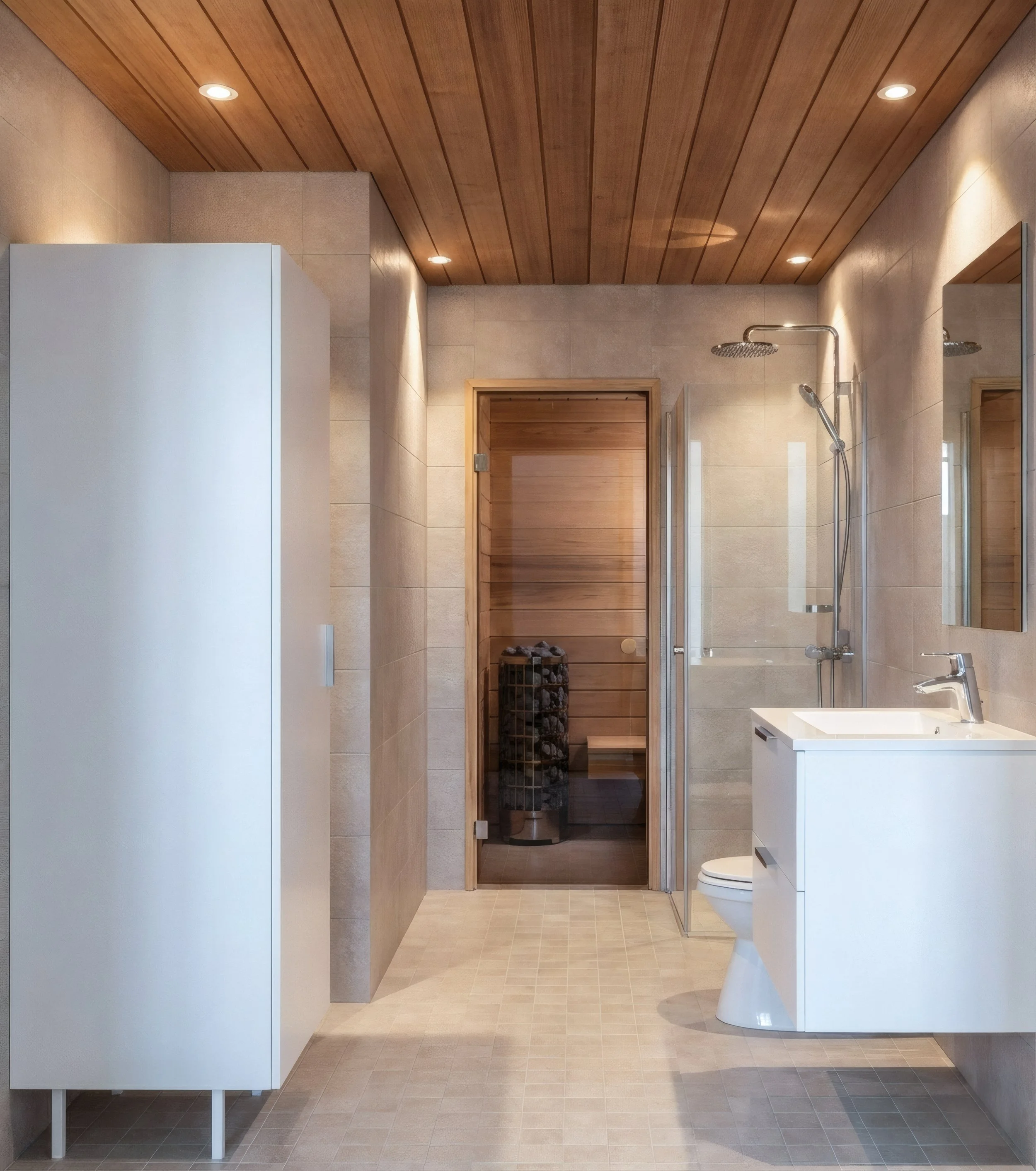The home interior design plan usually includes a spatial layout, surface material and color scheme, a list of loose furniture and equipment, fixed furniture design (like wall cabinetry), a lighting plan, 2D floor plans and necessary wall elevations, as well as 3D visualizations.